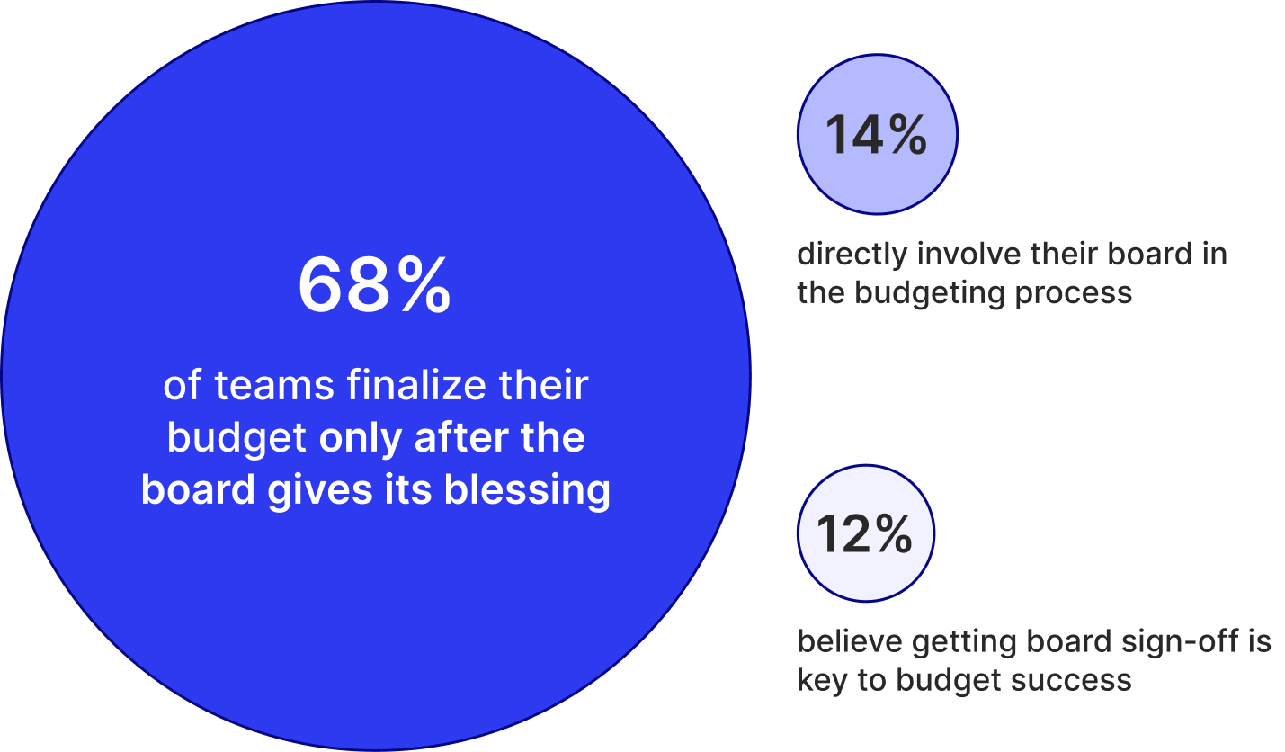 But one group that often gets looped in way too late is the board of directors. Our budgeting survey found that while 68% of teams finalize their budget only after the board gives its blessing, just 14% actually involve the BOD in the process.
