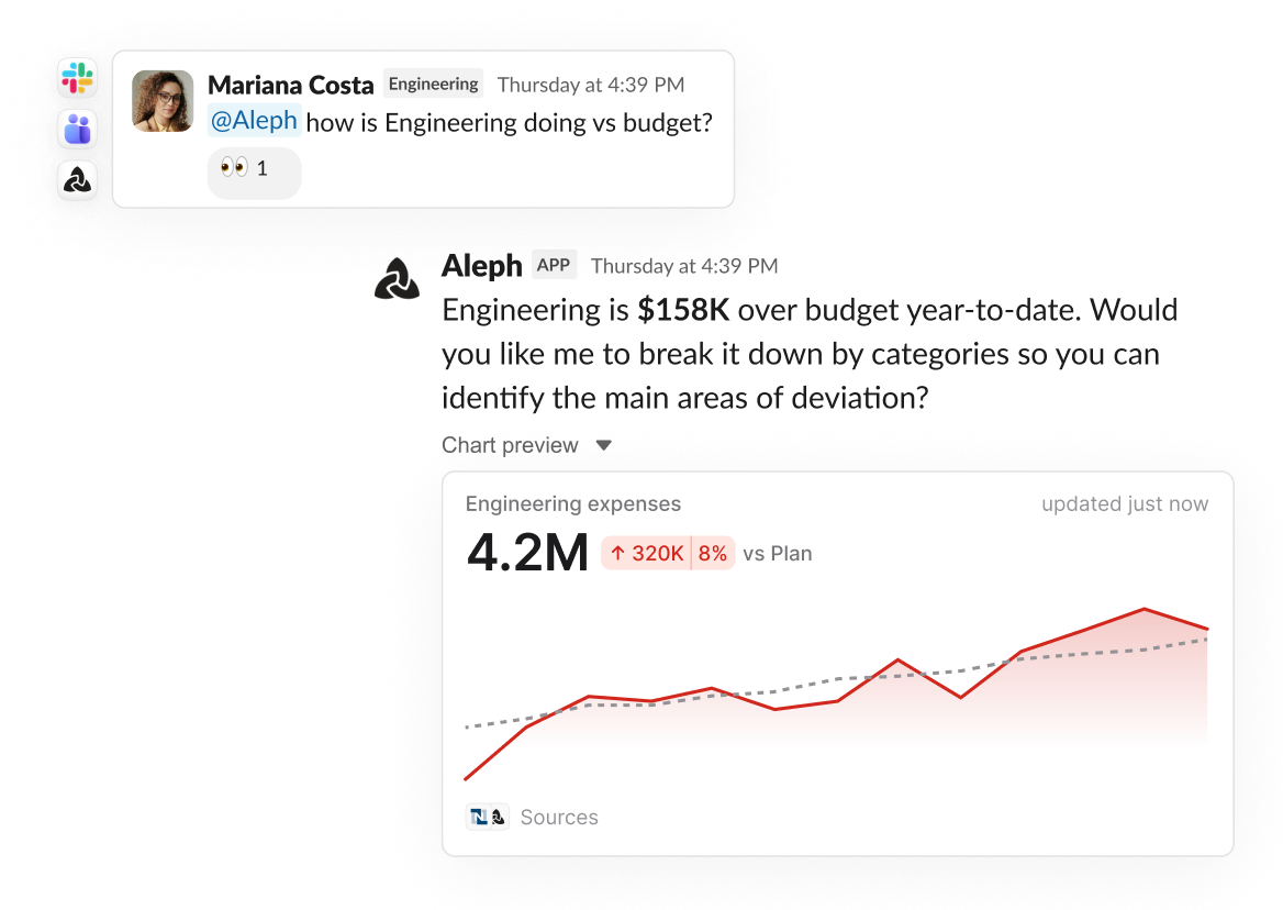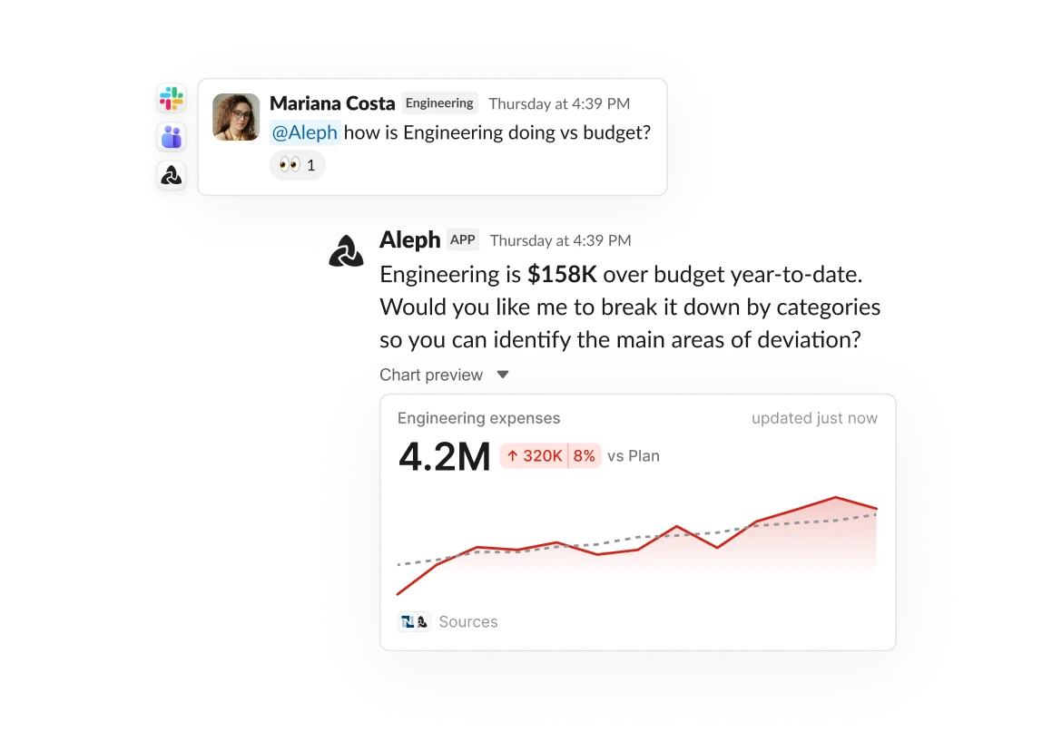 Stakeholders no longer need to wait on finance. Aleph Agent has the answer.