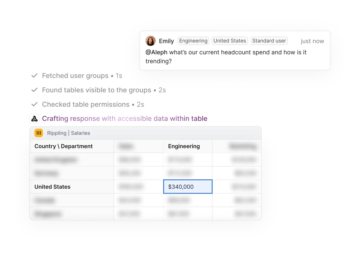 - Answers respect your existing data access and permissions