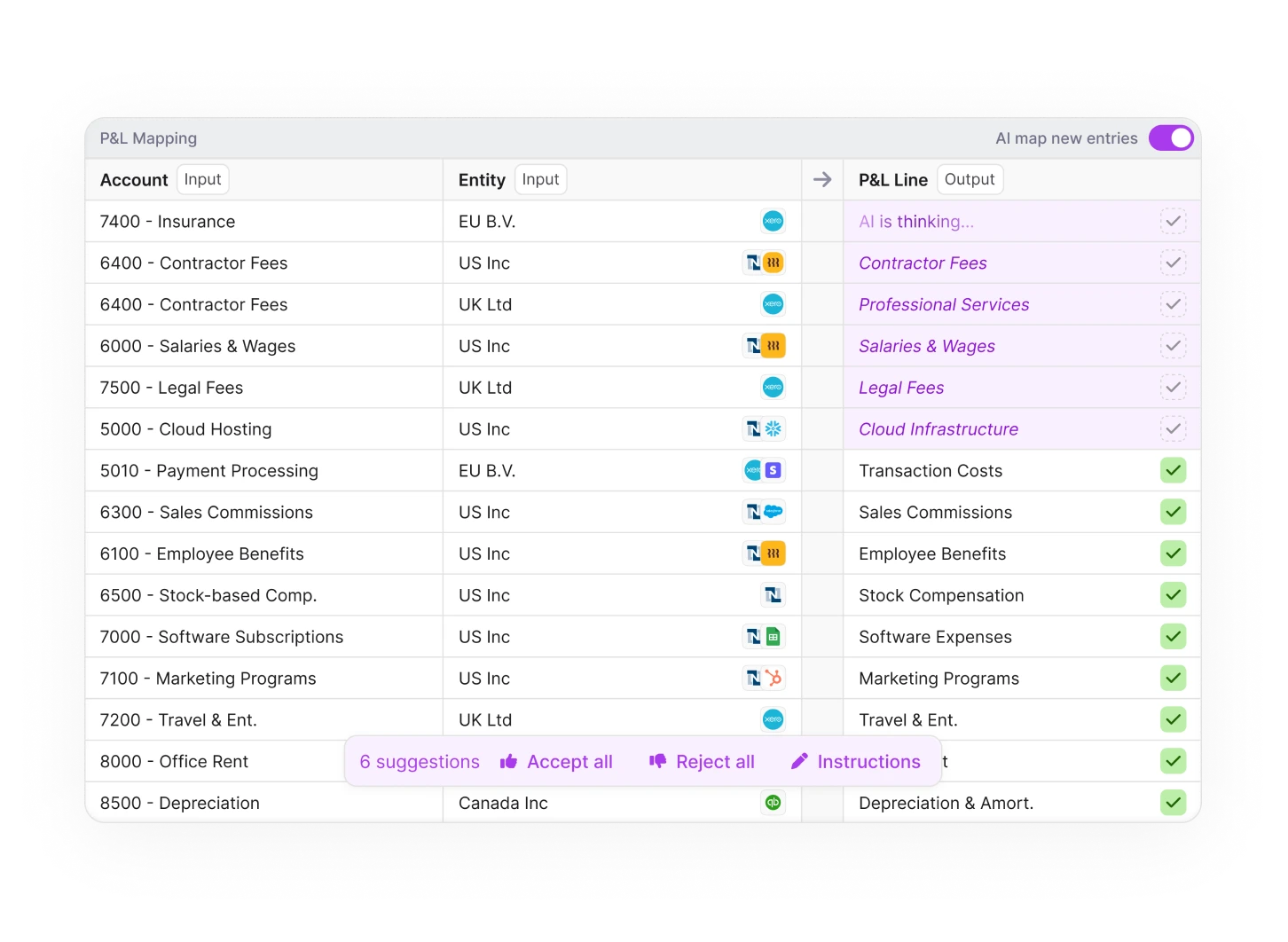Once configured, agents monitor your source data 24/7, ensuring new accounts, vendors, and dimensions are properly mapped and that nothing falls through the cracks.